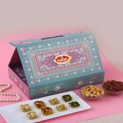 This gift pack contains:� Anjeer Chocolate Ladoo� Butter Scotch Ladoo� Golden Ladoo� Rose Ladoo� Purple LadooCreate special moments with this Delicious Assorted Ladoo Gift Hamper when you are together with your loved ones.